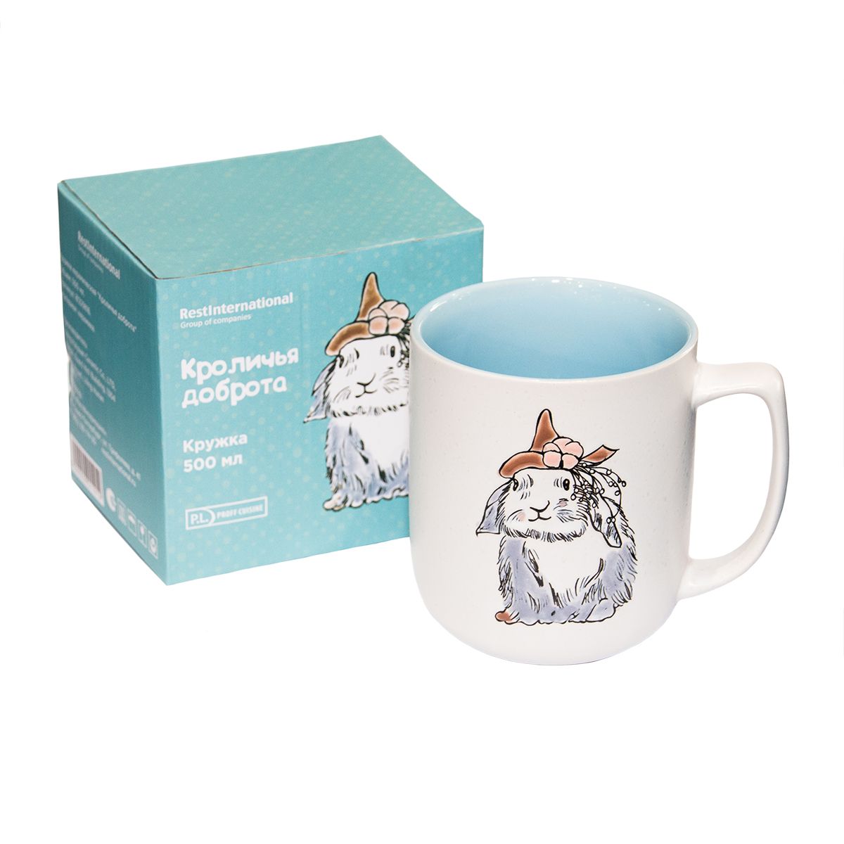 Кружка керамическая "Кроличья доброта" 500 мл (цвет белый,голубой внутри) P.L.