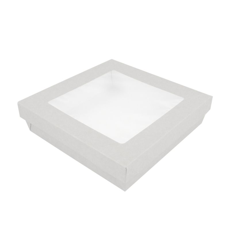 Ланч-бокс с крышкой с окном бумажный 1000 мл,белый 18.5*18.5*5 см,(1упаковка= 50 шт) GP