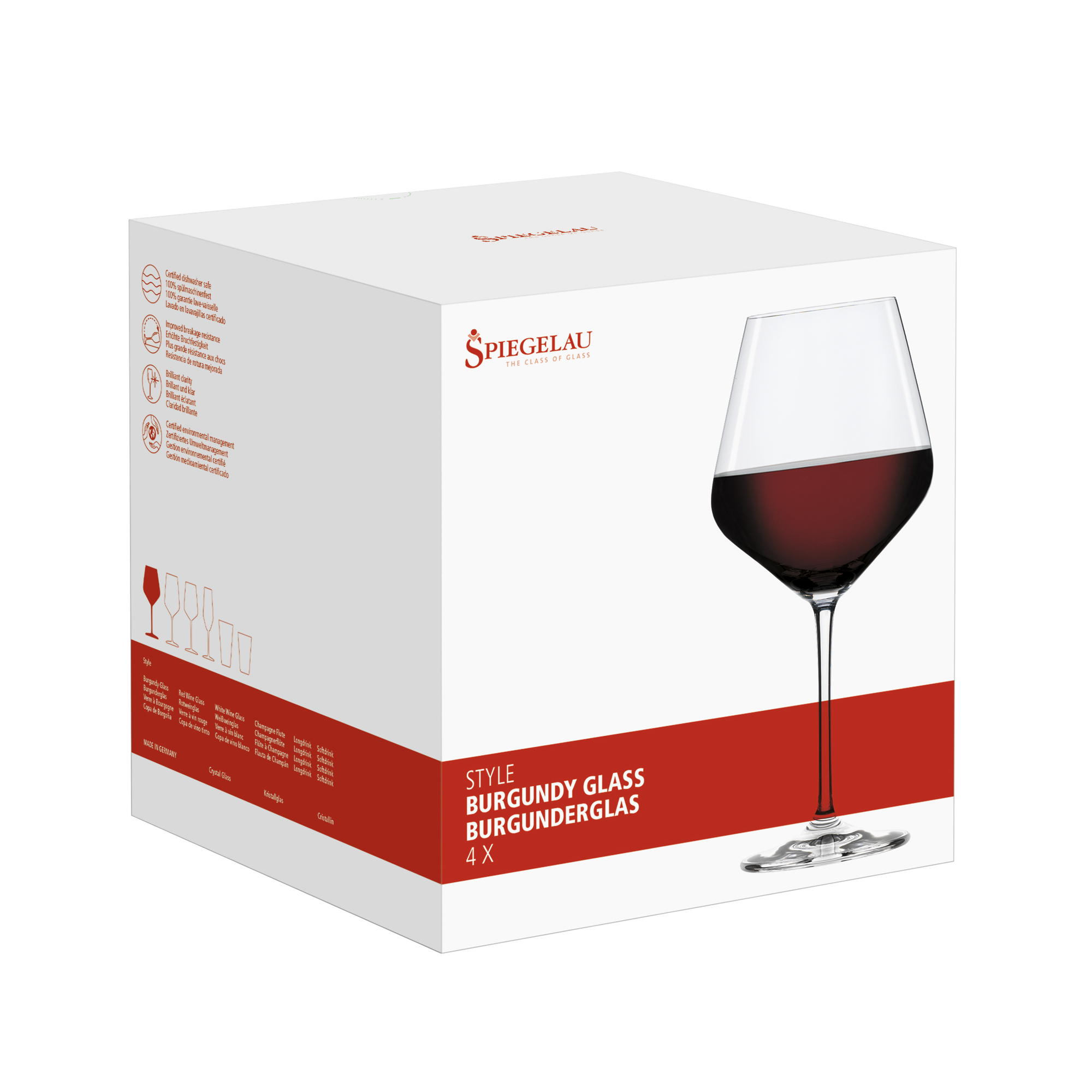 Набор бокалов для Бургундии, 640 мл, 4 шт., прозрачные, бессвинцовый хрусталь, серия Style, Spiegelau