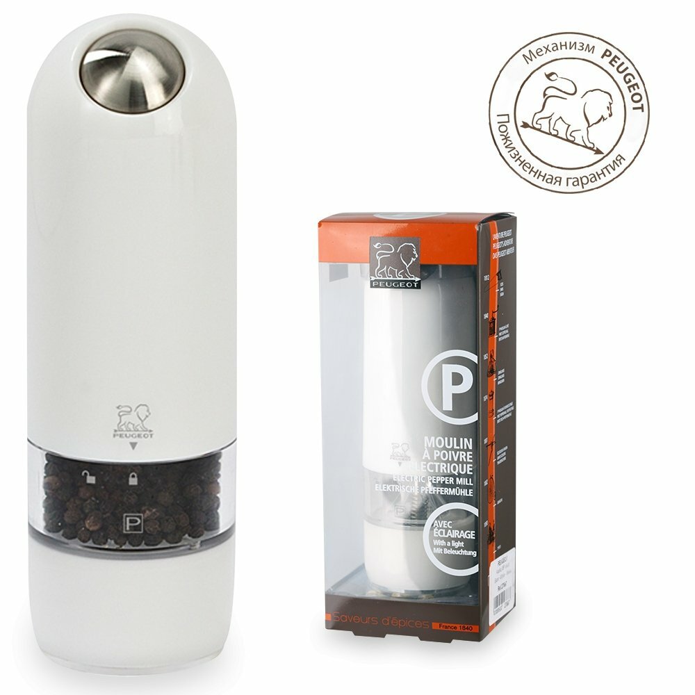 Набор электрических мельниц для соли и перца 17см, белый, ALASKA PEUGEOT, Франция