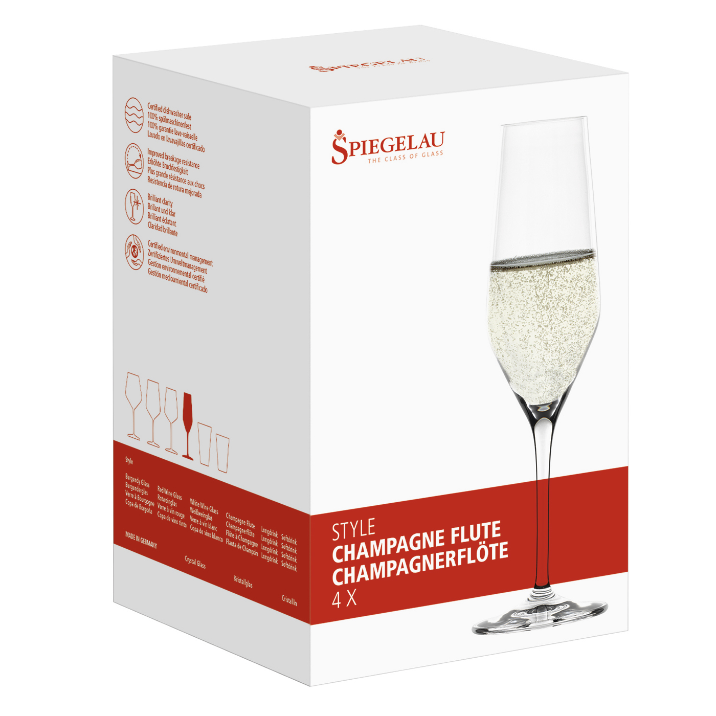Набор из 4-х бокалов для шампанского, объем: 240 мл, материал: хрустальное стекло, серия Style, 4670187, Spiegelau