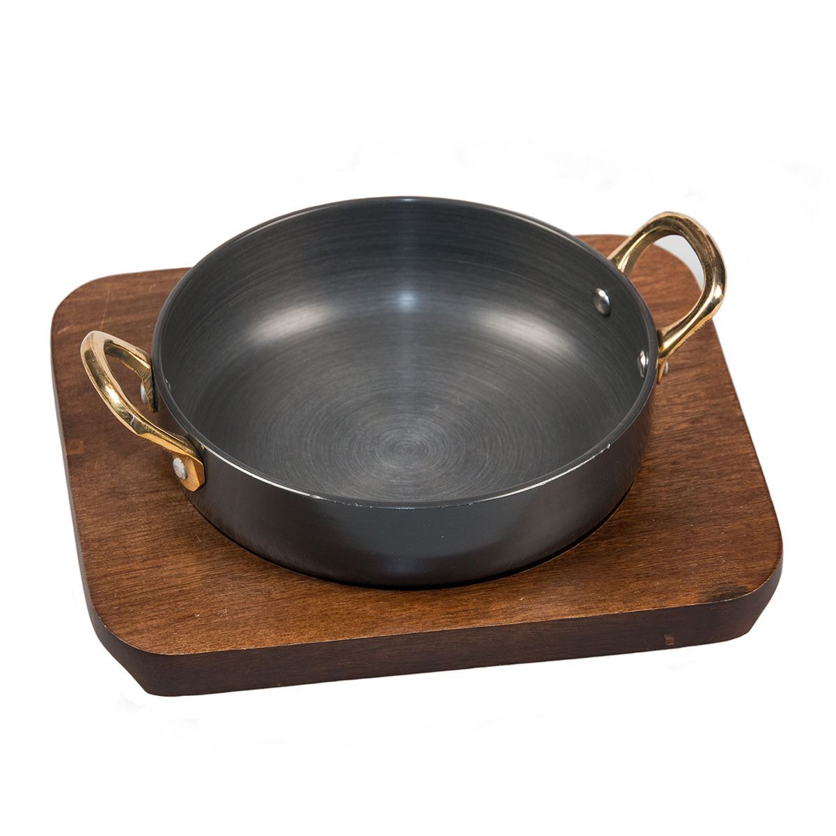Сковородка алюминий с анодированным покрытием 500 мл для подачи на деревянной подставке, P.L. Proff