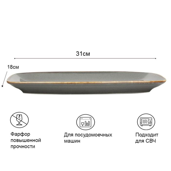Тарелка прямоугольная 31*18 см, Seasons Темно-серый, Porland