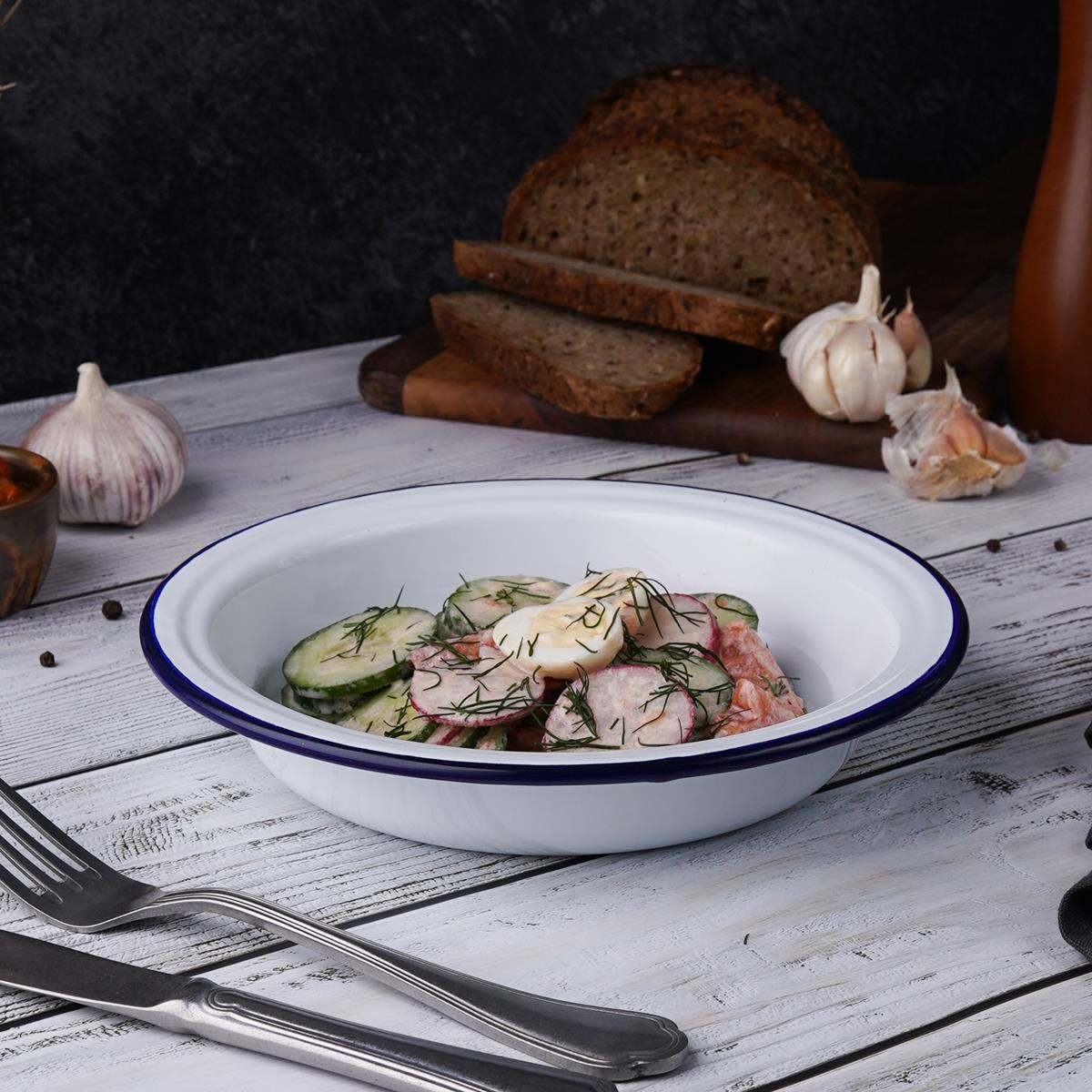 Тарелка,салатник эмалированный d=20 h=4 см, "Blue Rim", P.L. Proff Cuisine
